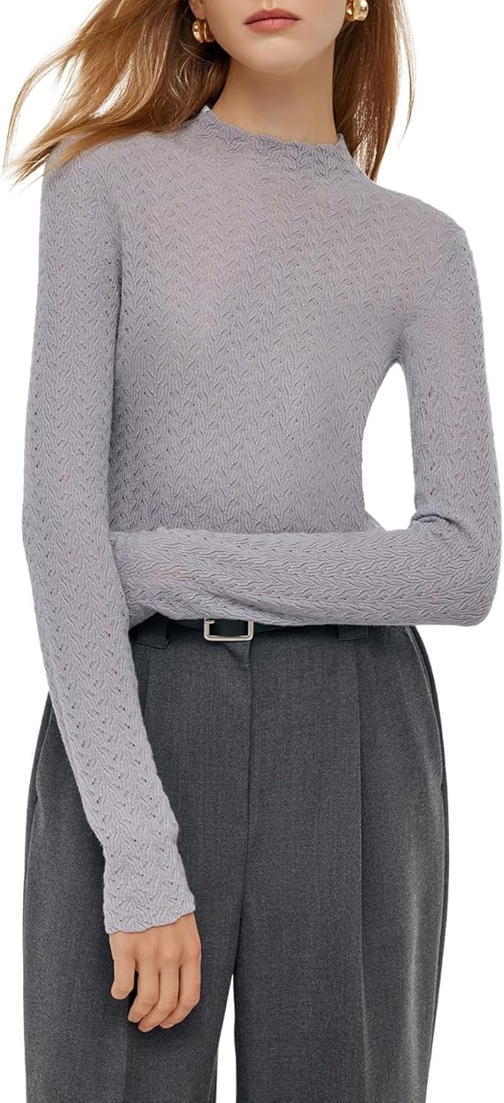 Machine Washable Merino Wool Seamless Sweater for Women Trendy Long Sleeve Mock Neck Pullover Fall Sweater