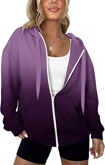 Women's Oversized Hoodies for Women Full Zip Up Long Sleeve Sweatshirts Drawstring Jackets Coat with Pockets